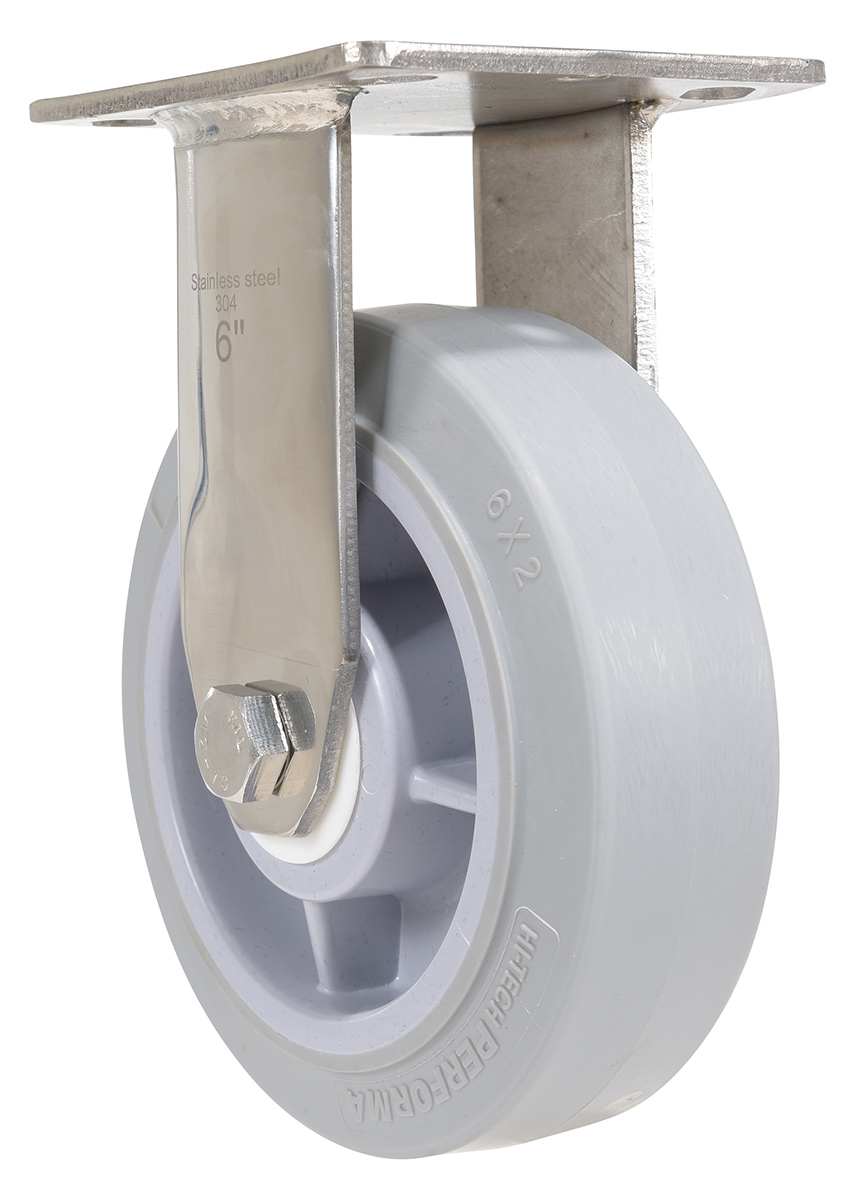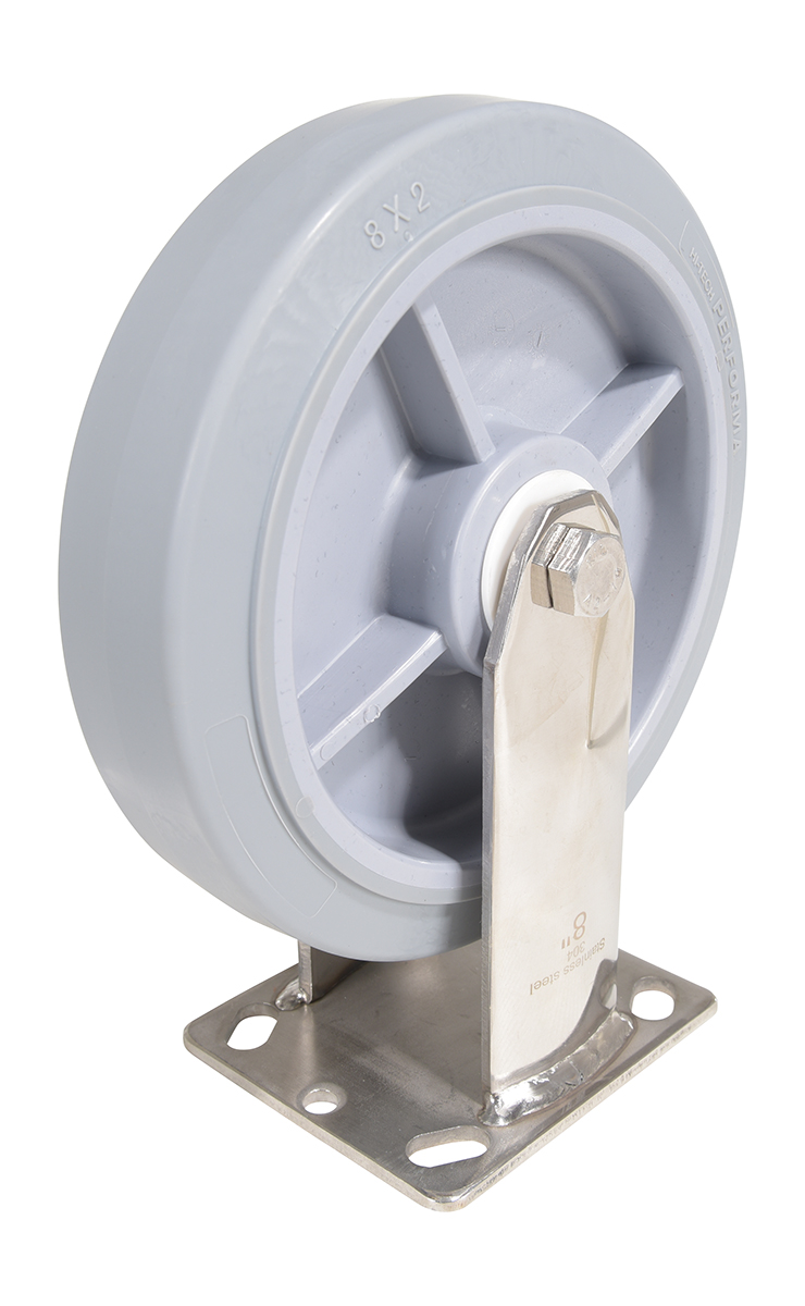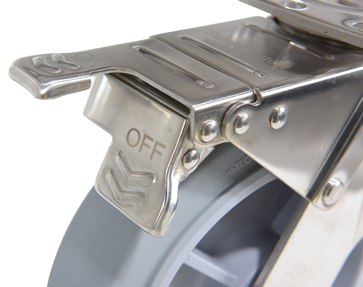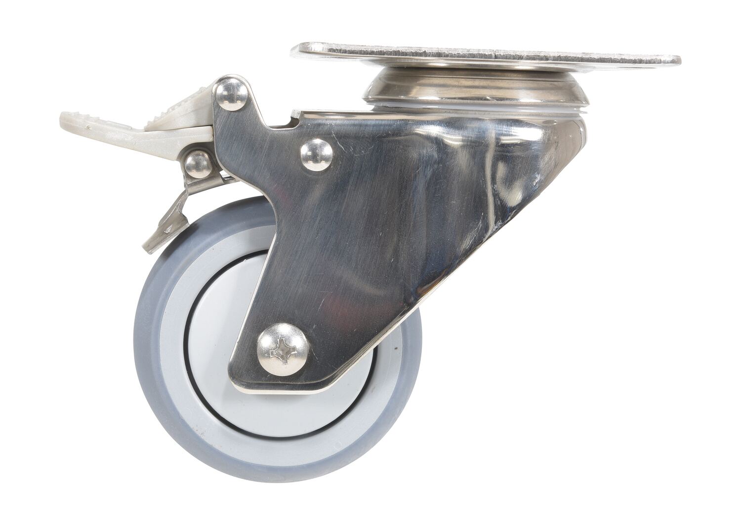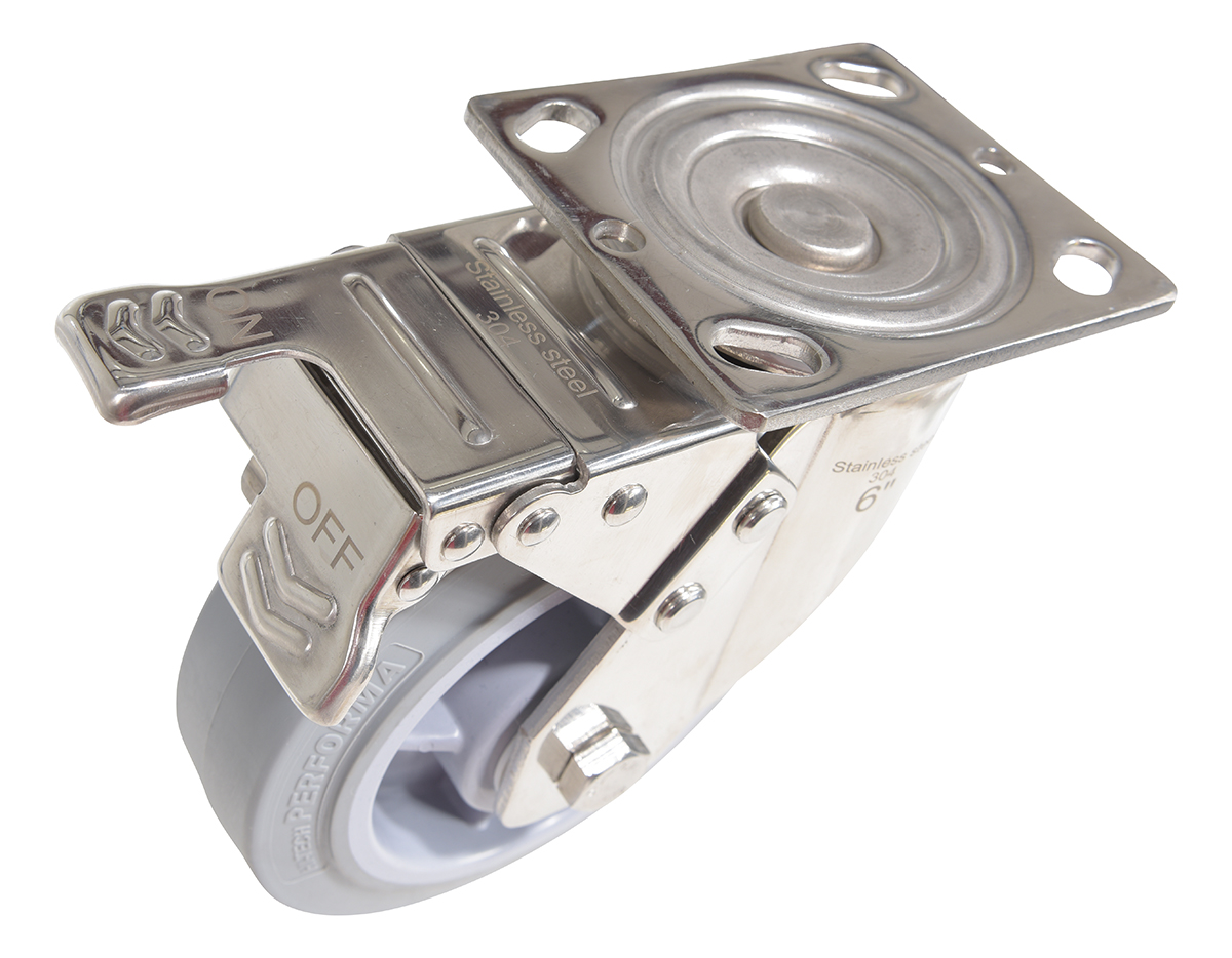 Stainless steel casters are excellent for corrosion resistance. They are ideal for applications where frequent wash downs are a necessity or have exposure to cleaning agents, steam, or other corrosive agents which could rust or corrode. Thermoplastic rubber (TPR) provides a smooth quiet ride with a non-marking tread. It offers great floor preservation and is resistant to most chemicals.