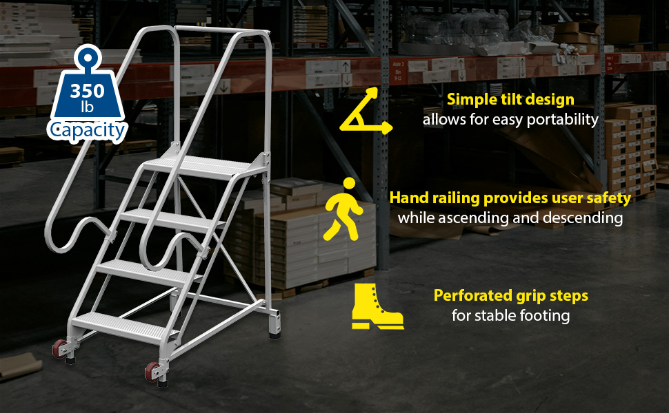 LAD-TRN-50-4-FDA LAD-TRN-50-4-FDASteel Tip N Roll FDA Compliant Ladder 50 Degree 4 Grip Strut 24 In. Step Width 350 Lb. Capacity WhiteUniform Capacity (lb.): 350