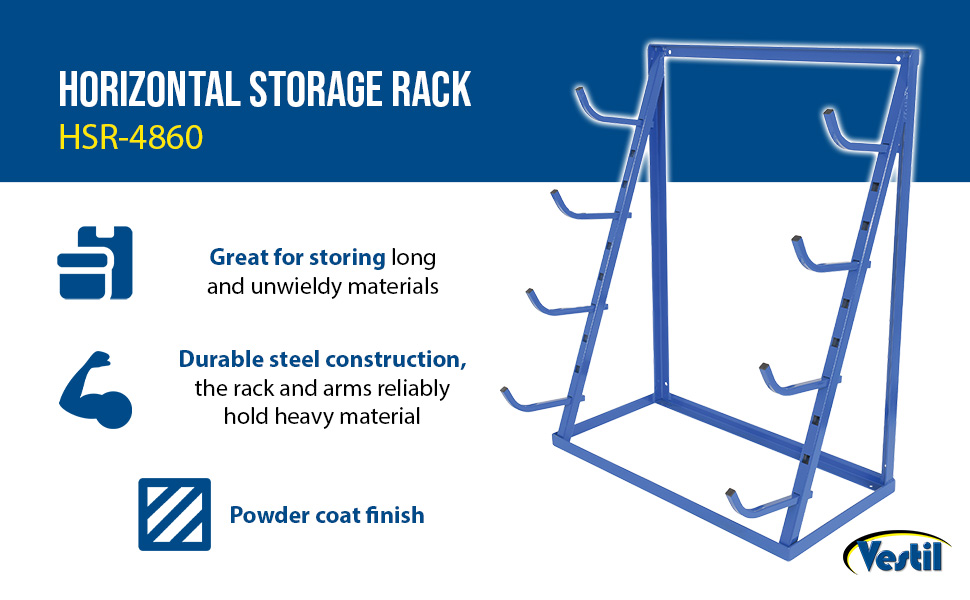 HSR-4860 HSR-4860Steel Horizontal Storage Rack 48 In. Usable Width 250 Lb. Capacity Per Arm BlueCapacity Per Arm (lb.): 250
