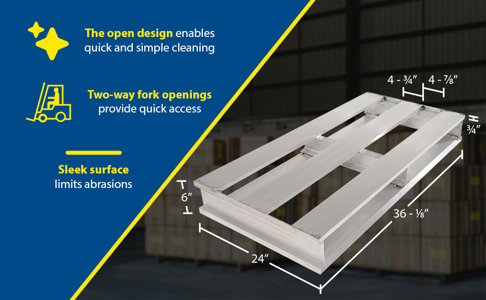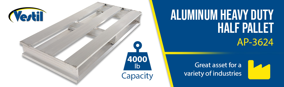 AP-3624 AP-3624Aluminum Heavy Duty Half Pallet 24 In. x 36-1/8 In. x 6 In. 4000 Lb. Capacity SilverUniform Capacity (lb.): 4,000