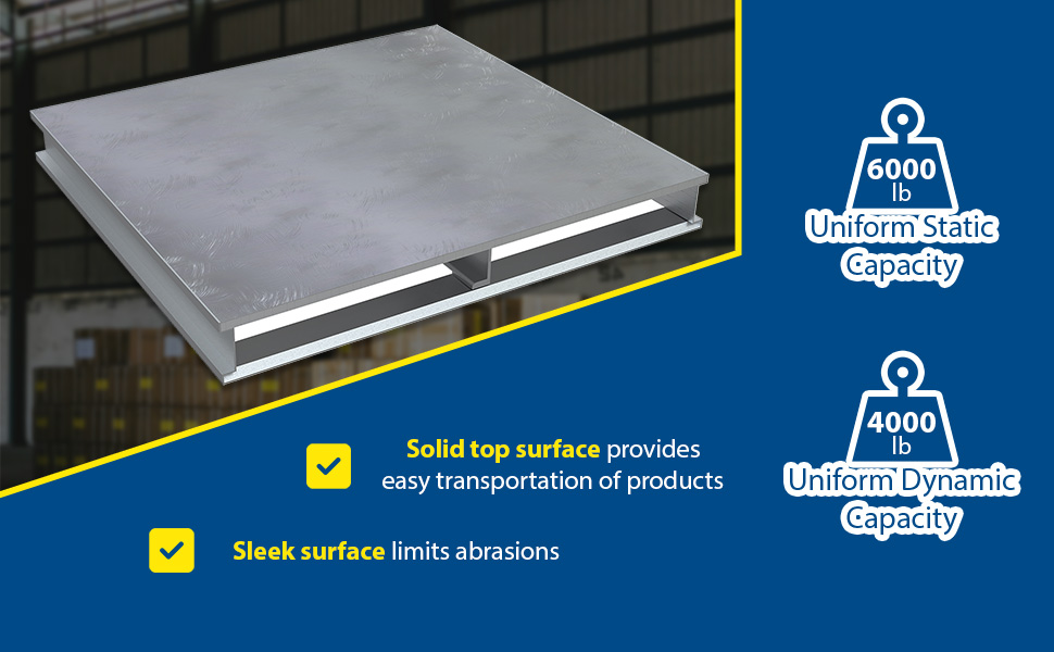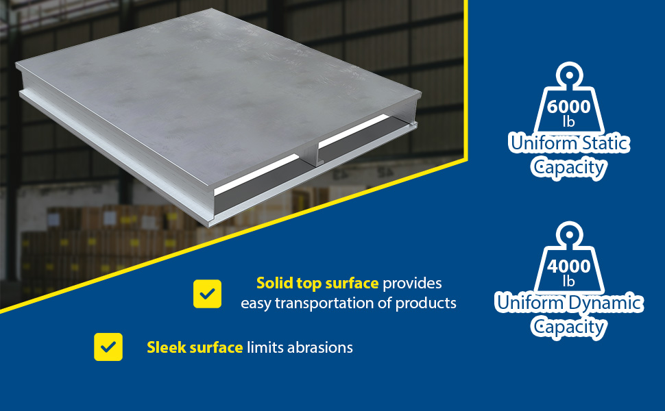 AP-ST-4248-SB AP-ST-4248-SBAluminum Solid Top with Skid Bottom 42 In. x 48 In. 6000 Lb. Capacity SilverStatic Capacity (lb.): 6,000
