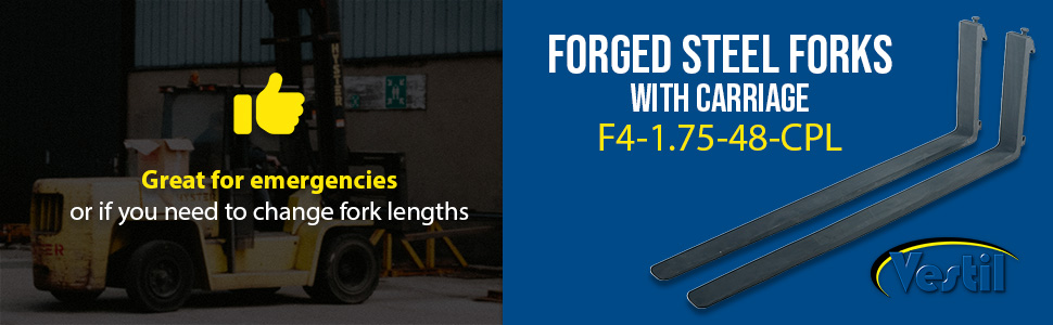 F4-1.75-42-CPL F4-1.75-42-CPLForged Steel Forks with Carriage Pin 42 In. x 1-3/4 In. 5,000 Lb. Capacity BlackUniform Capacity Per Pair (lb.): 5,000