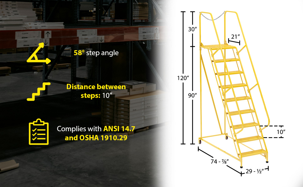 | Steel Maintenance Ladder 58 Degree 9 Perforated 24 In. Step Width 350 Lb. Capacity Yellow | Uniform Capacity (lb.): 350 Step Angle (degrees): 58 | 279 |