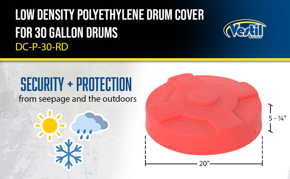 DC-P-30-RD DC-P-30-RDLow-Density Polyethylene Drum Cover 30 Gallon RedWorks With Steel Drum (gal.): 30