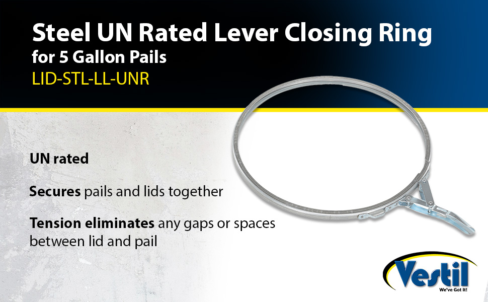 LID-STL-LL-UNR LID-STL-LL-UNRSteel UN Rated Lever Lock Closing Ring For 5 Gallon Pail Lids SilverGauge: 24