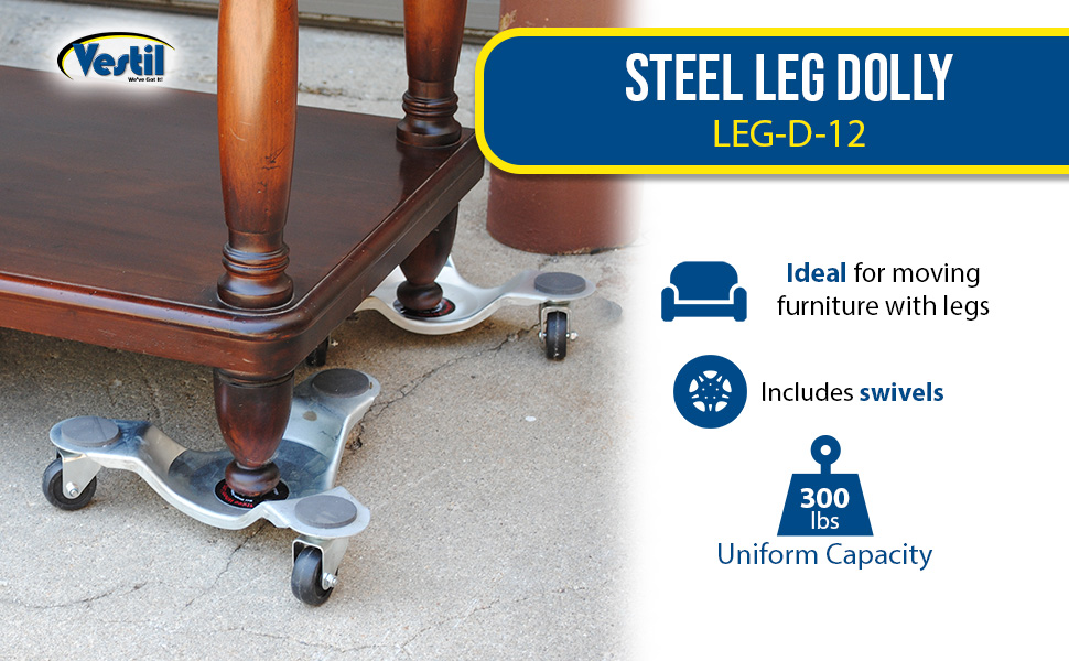 LEG-D-12 LEG-D-12Steel Leg Dolly 10-3/4 In. x 12 In. x 2-3/4 In. 300 Lb. Capacity SilverUniform Capacity: 300