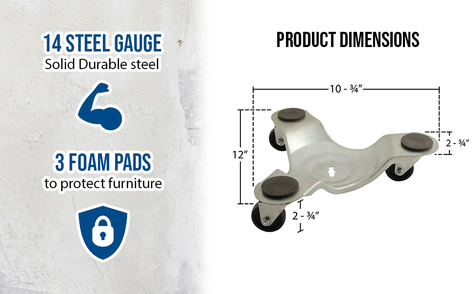LEG-D-12-4PK LEG-D-12-4PKSteel Leg Dolly 10-3/4 In. x 12 In. x 2-3/4 In. 300 Lb. Capacity 4 Pack SilverUniform Capacity: 300