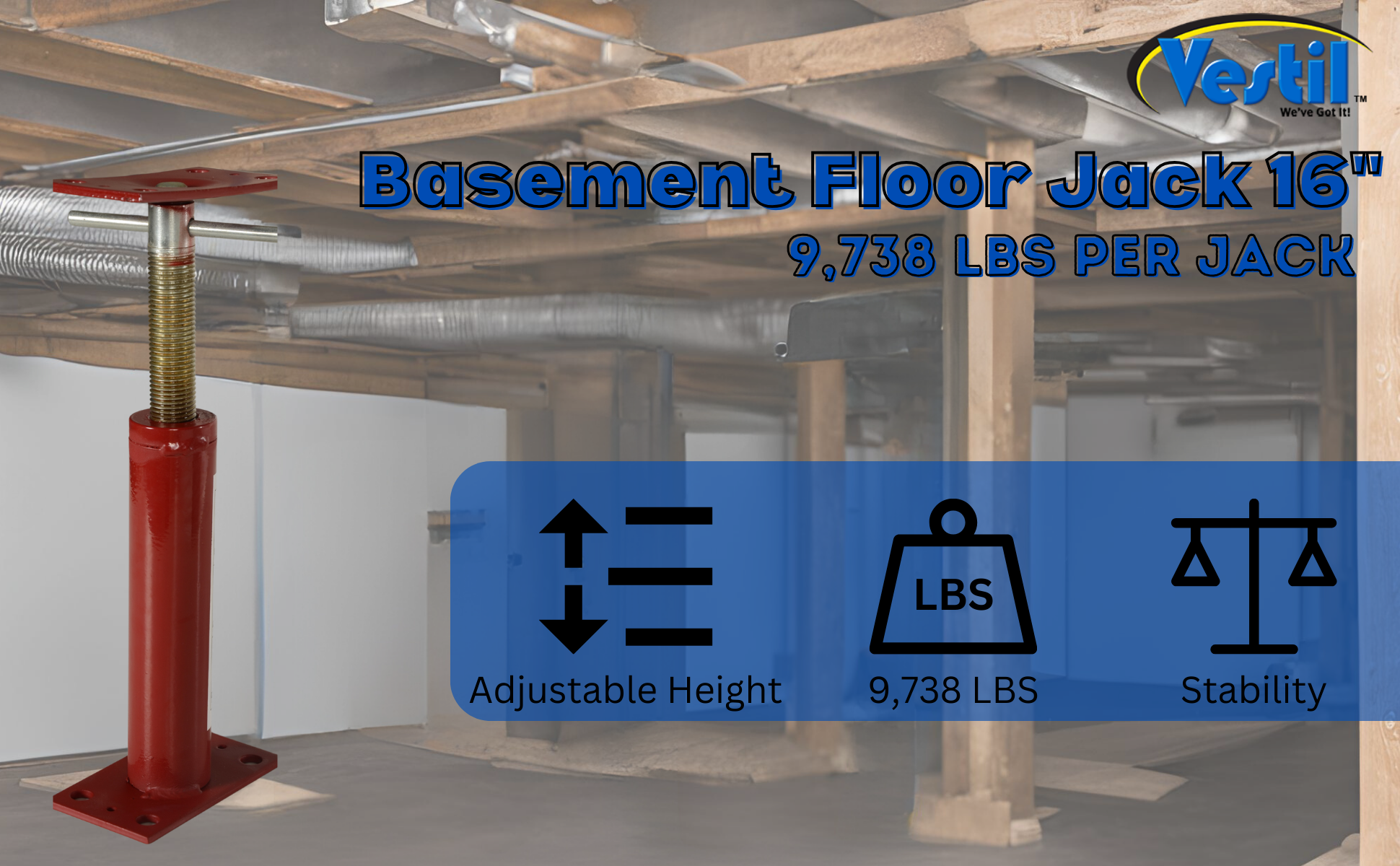 FJB-16 FJB-16Basement Floor Jack 16 In. Maximum Height 9,738 Lb. Capacity RedHeight Minimum/Maximum (in.): 12 to 16