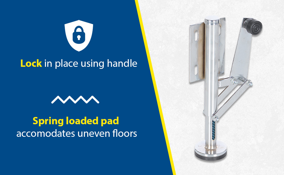 | Stainless Steel Right Mount Hand Operated Floor Lock 10 to 12 In. Height Silver | Mounting Height (in.): 10 to 13-7/8 Retracted Height on Bottom Mounting Hole (in.): 10 | 9 |
