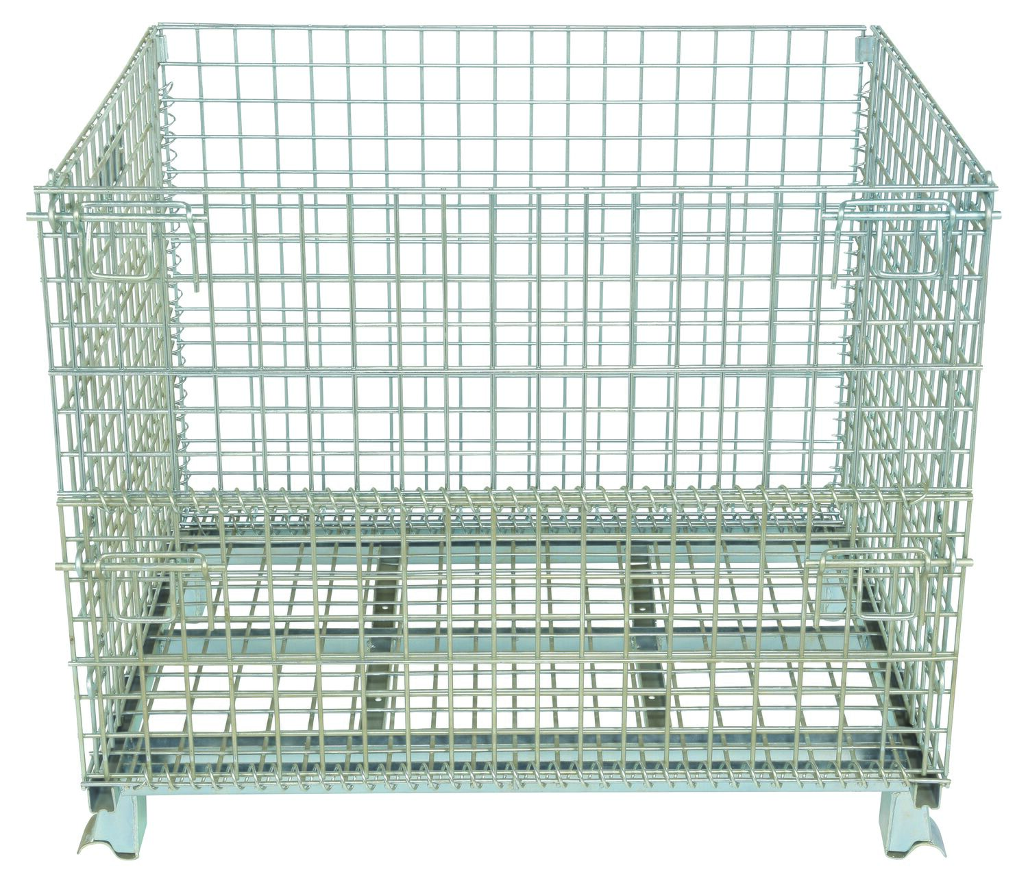 All steel construction available is either 3-gauge, or 11-gauge galvanized welded wire mesh. Corners have eyelets designed for rigidity and stacking. Legs are wrapped and welded around base to eliminate sharp edges. Containers can be stacked 4 high and have a 4" clearance underneath to allow movement by fork or pallet trucks. Container's front half drop gate allows speed loading and access to stored goods. The collapsible design allows for efficient storage and transportation. If you are in the need for an open wire design that allows for full visibility for inventory checks, ventilation and cleanliness then this is the product for you.
