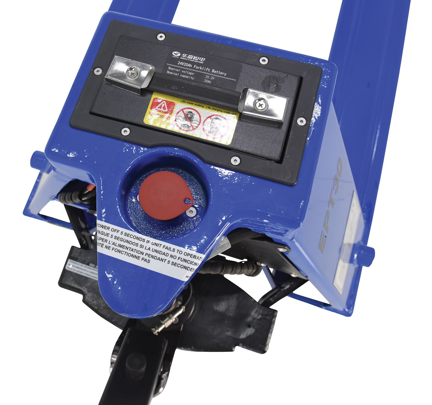 EPT-2748-30 EPT-2748-30Steel Fully Electric Pallet Truck 27 In. x 48 In. 3000 Lb. Capacity BlueOverall Fork Width (in.): 27