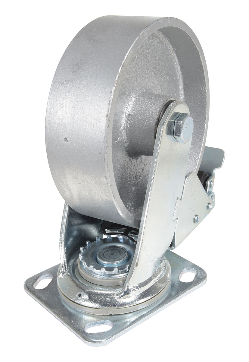Cast iron casters are a cost efficient way of getting industrial carts and dollies back to running smoothly. The units are abrasion resistant even when transporting substantial weight. Swivel model allows the user to change directions and maintain increased control over the device. Simple attachment for immediate use upon installation. Gray tread color. Mounting hardware not included.