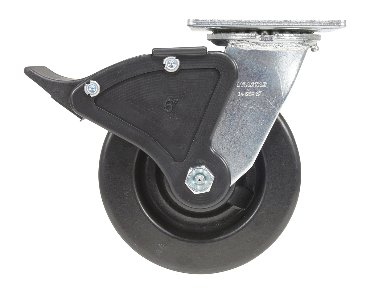 Phenolic wheels have a high resistance to impact damage, while providing protection for floors in commercial and industrial settings. Resistant to water, oil, and grease. It is also spark resistant and operates in a wide temperature range. Black tread color. Wheel core is phenolic. 100 Shore A.