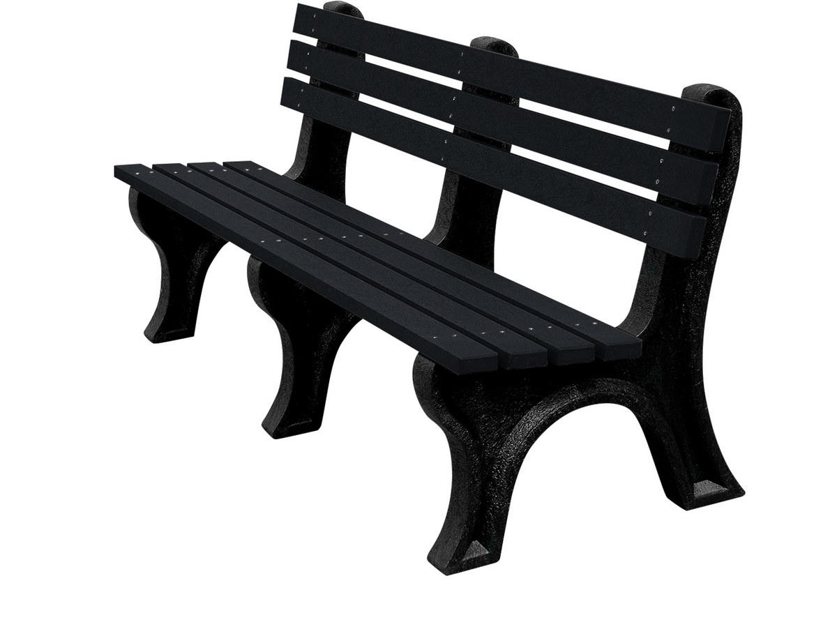| Recycled Plastic Economy Backed Bench 48 In. Black Legs and Black Seat | Seat Category: Bench Bench Material: Recycled Plastic HDPE | 35 |
