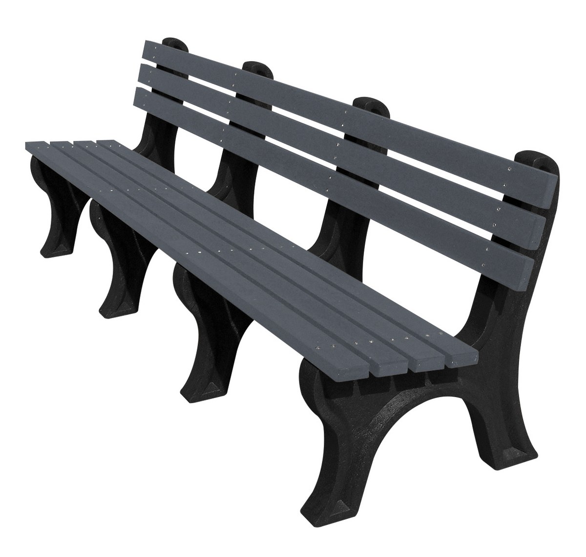 | Recycled Plastic Economy Backed Bench 96 In. Black Legs and Charcoal Seat | Seat Category: Bench Bench Material: Recycled Plastic HDPE | 211 |