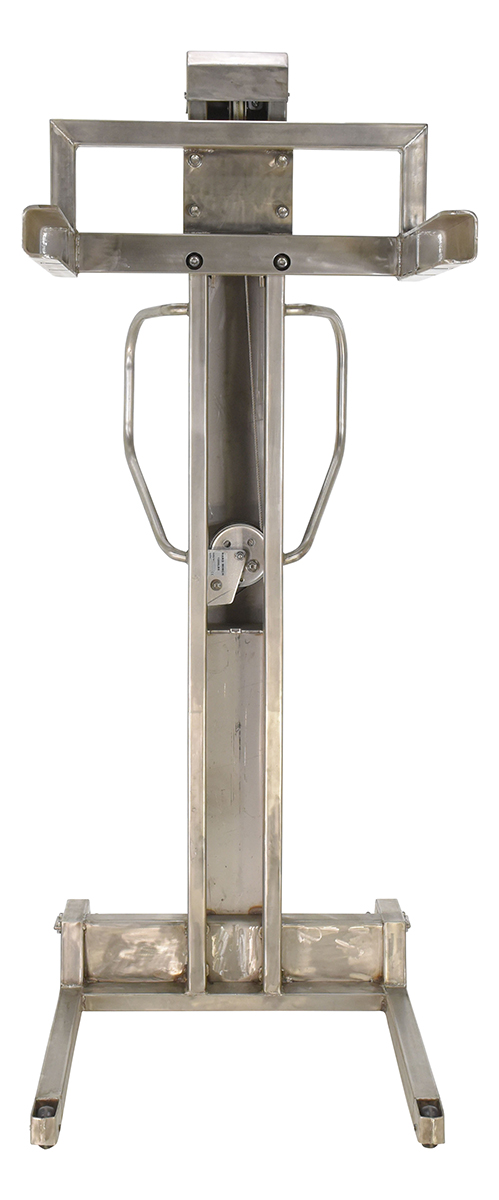 If a meat buggy makes moving items easy, then the meat buggy lifter/transporter makes moving large quantities even easier. The straddling dual arms of the lifter help secure the unit in place. Once in place, the user can utilize the hand winch to lift or lower the buggy to the desired height. For transporting, the unit rolls smoothly on casters, while the upright driving handles help steadily steer. Stainless steel open design is simple to wash-down and clean after use.