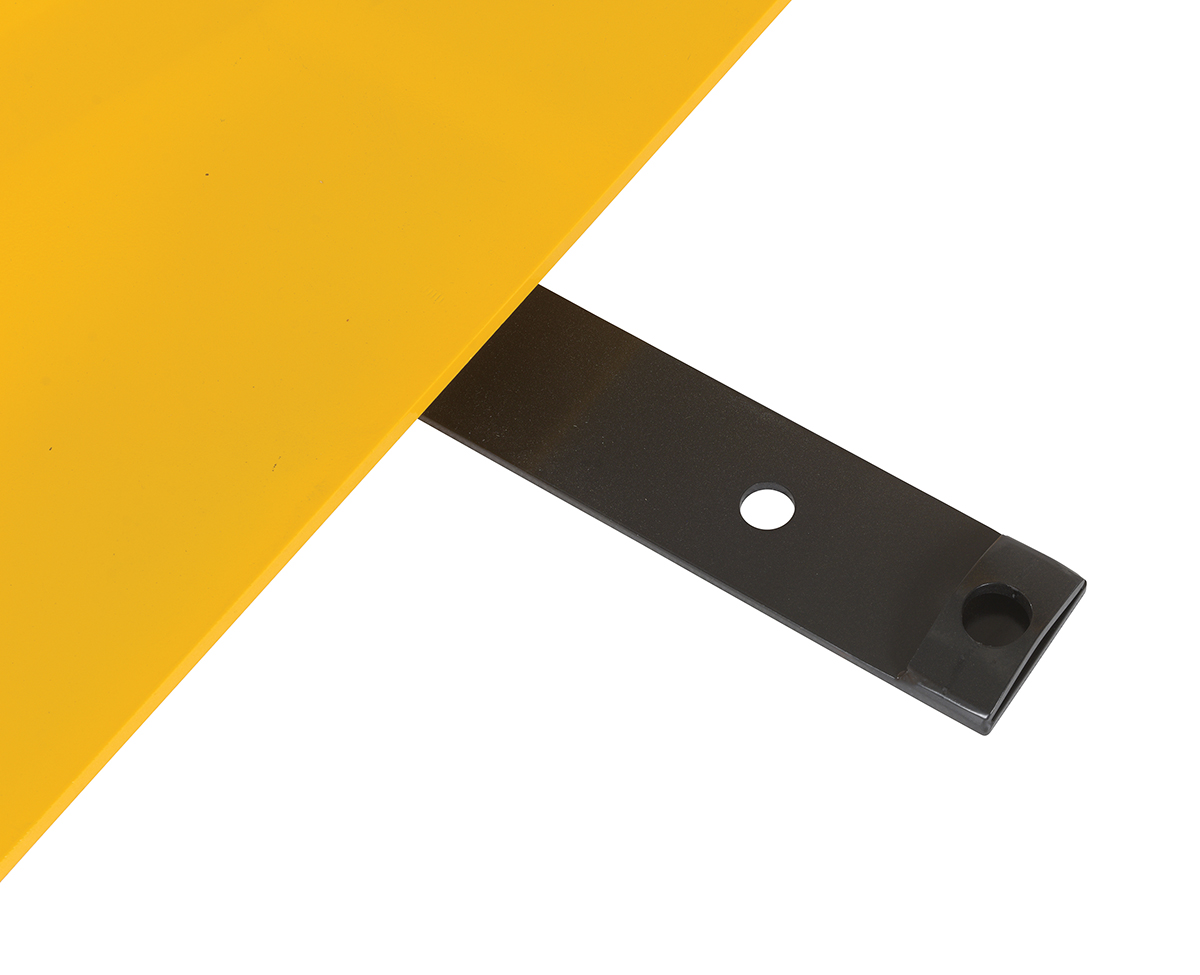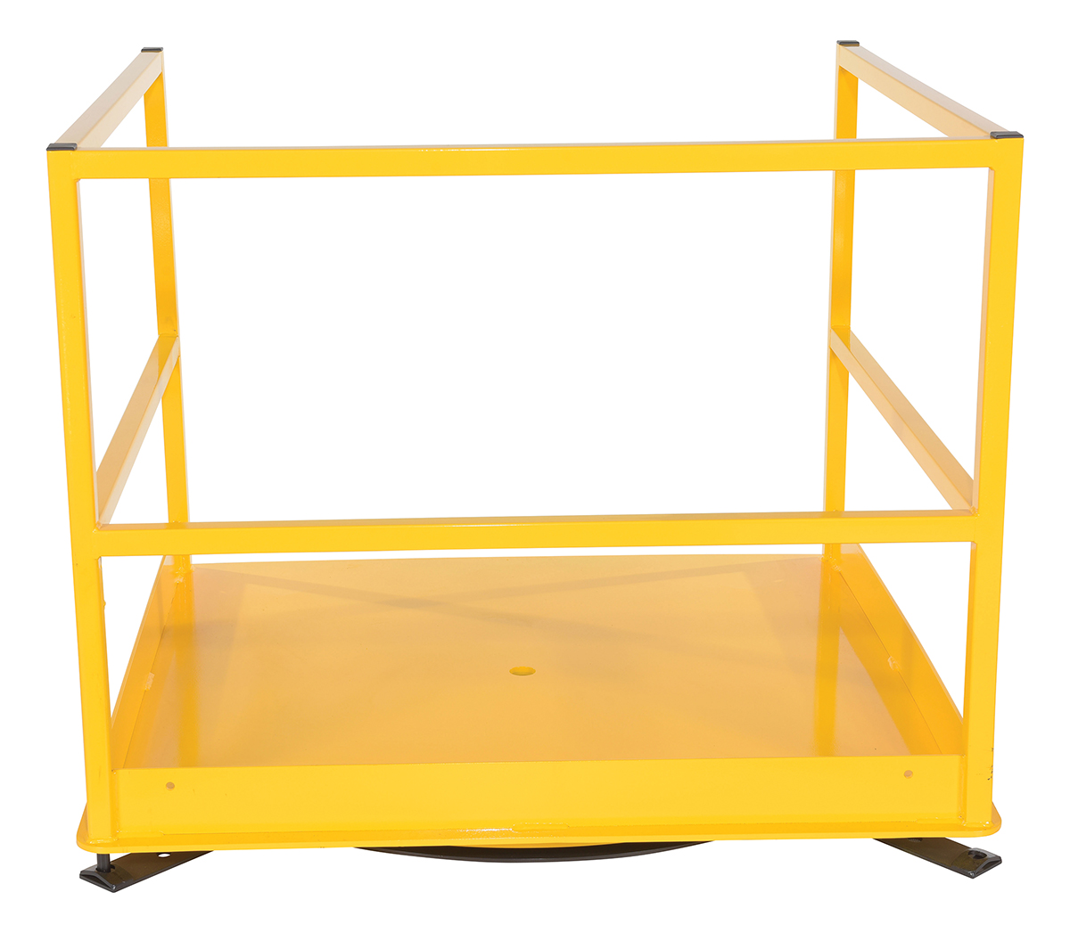 Safety has always been the number one priority of the rotating mezzanine system. The rotational design can be maneuvered into different positions with minimal manual labor, simplifying the loading unloading process. The mezzanine system includes three gated sides and one open side, ensuring security and stability of both personnel and items. The single open mezzanine side enables pallets and boxes to be transferred safely and efficiently. An extended height, raised lip, on the three gated sides limit possible slide-offs of any small items. Unit includes a yellow and black powder coat finish for baked in added toughness.