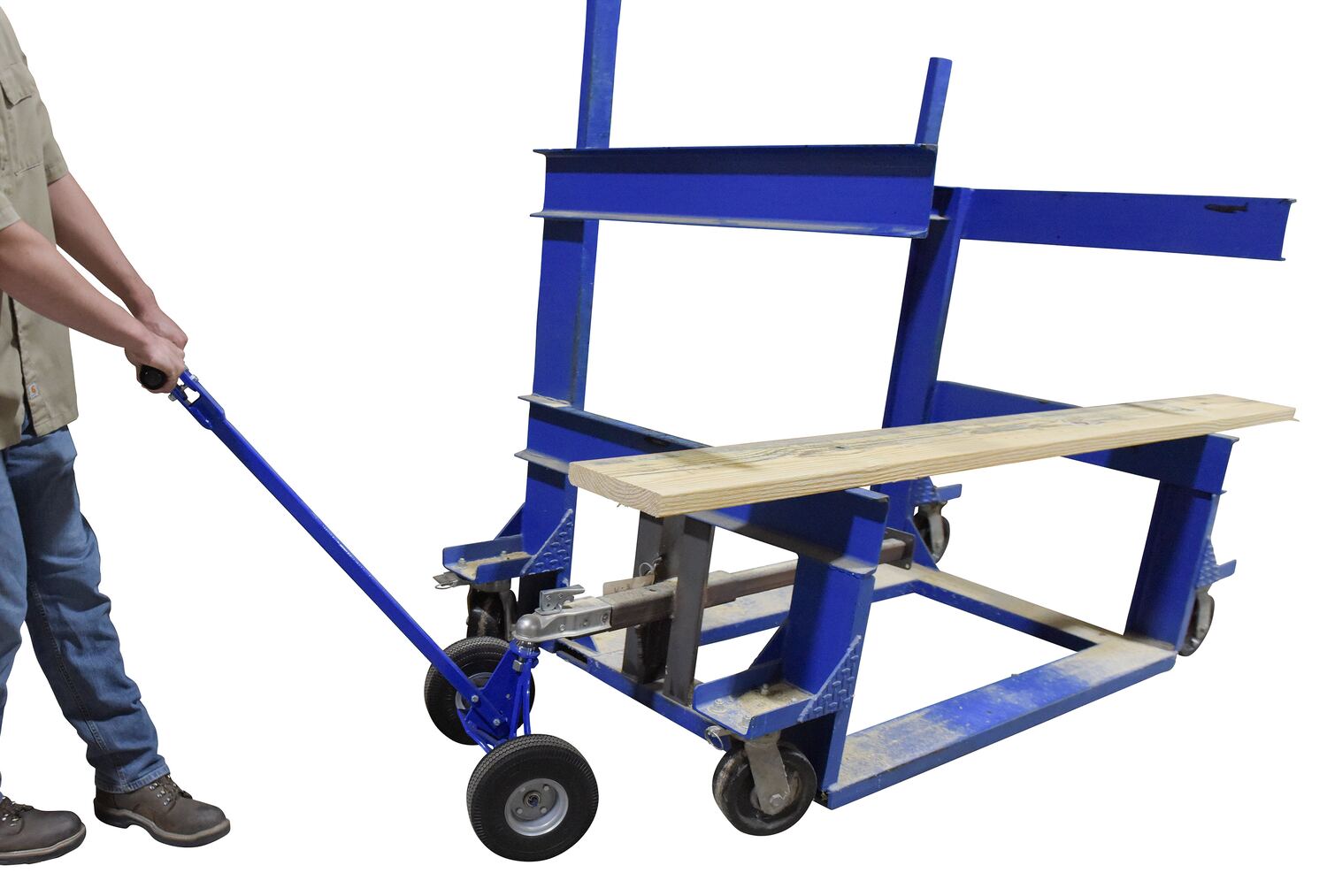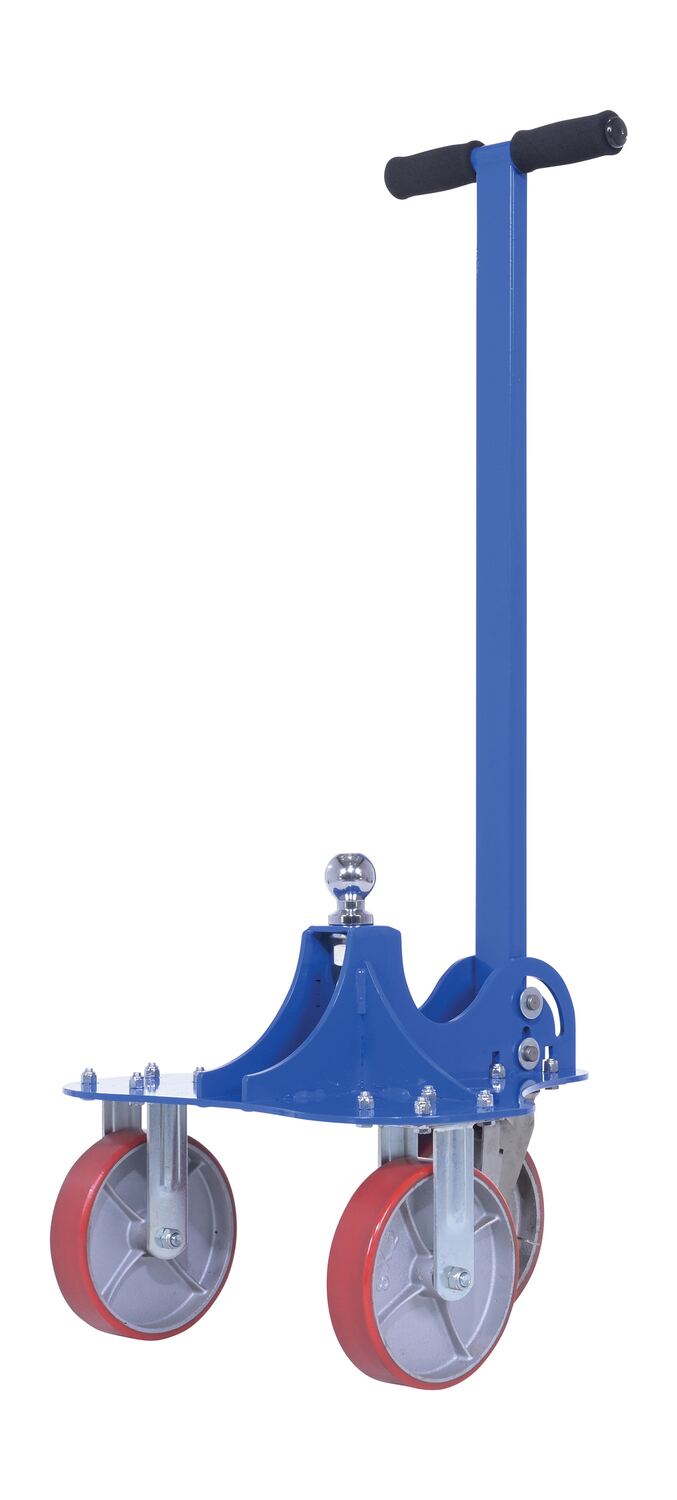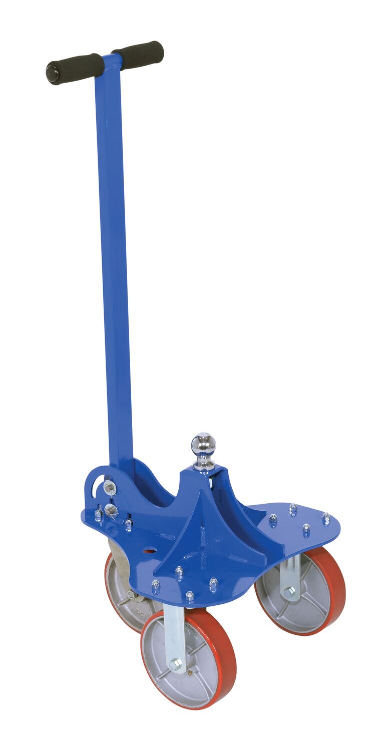 HM-B200A manual trailer dolly is an excellent addition to the industrial workplace or the at-home shop. A unique open design, enables a simple attachment to the ball hitch. The extended handle length minimizes slouching and bending and promotes a better posture for when manually moving a hitched trailer. With a steel construction, this trailer dolly is strong and durable throughout daily use. Blue powder coat finish for baked in added toughness. Hardware is included.