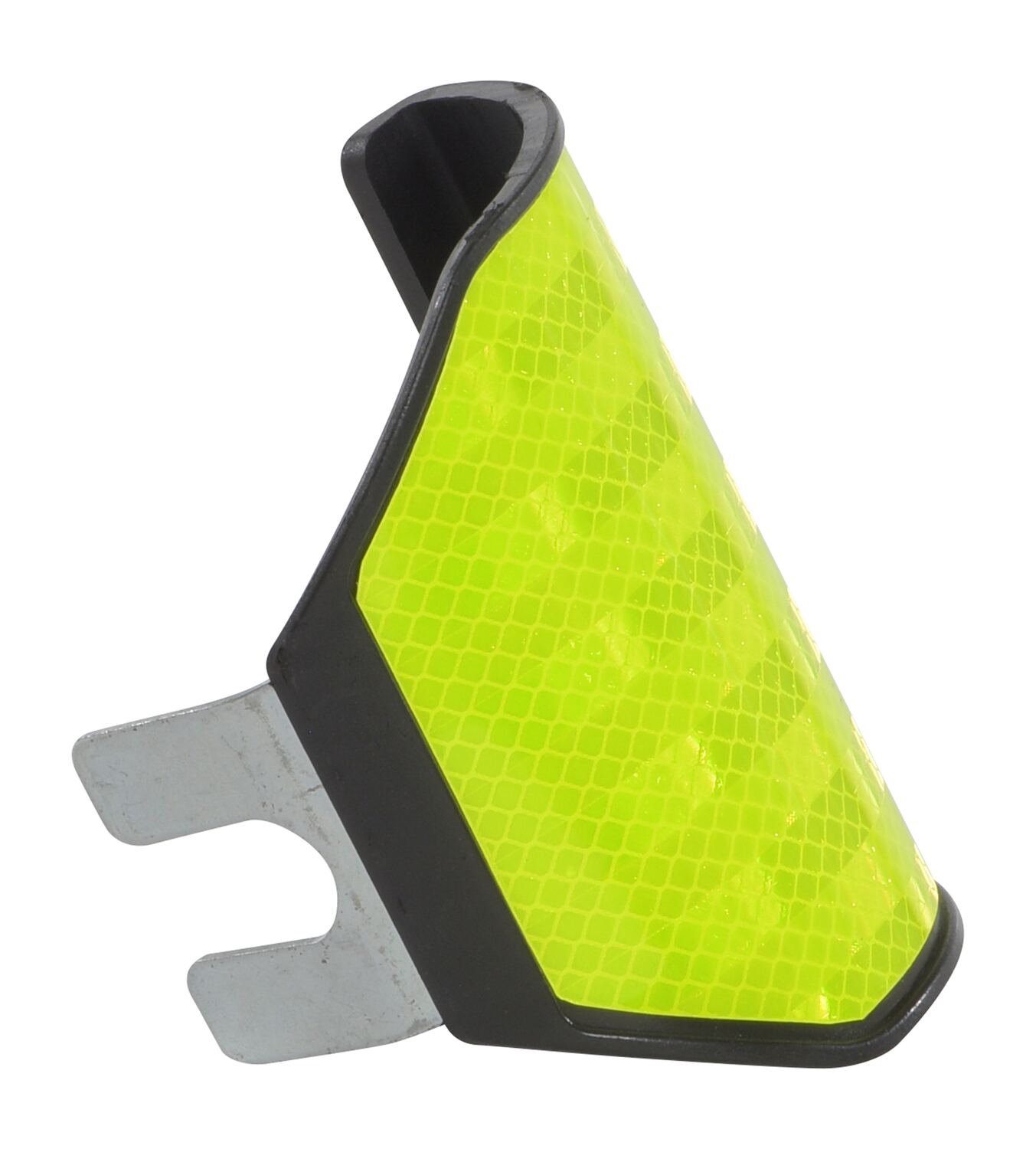 A guardrail reflector provides an additional level of visibility. With a unique style, the reflector is visible from 360 degrees. The built-in steel hook provides a quick connection to a new or existing guard rail. Being constructed of flexible material, the reflector is a sharp contrast to many standard hard plastic designs.