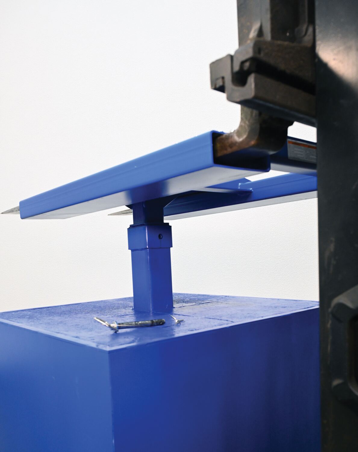 No more using manual methods for compacting waste bin contents. Instead, use a forklift compactor! With a compactor, the weight of the unit drives down the size of the contents. As the compression takes place; the waste is forced into a smaller and smaller area, eliminating any unused space not being fully utilized within the bin. Two sets of fork pockets are built into the design. The lower set is accessible for quick movement between work areas, while the upper is intended for the lifting and lowering of the compactor inside waste bins.
