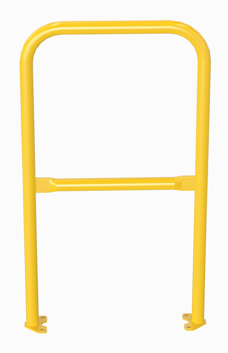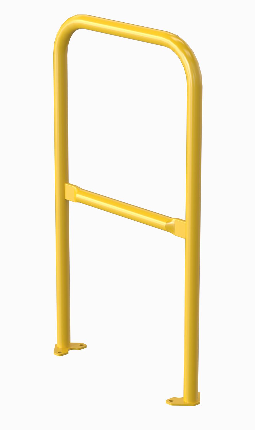 The pipe safety railing adds protection to pathways and dock areas. The base plate not only allows for a quick installation but also gives the steadiness and strength that is needed from a safety railing. With this mounting style the unit can be permanently installed or moved between locations. The upper and lower design gives the user stability and protection against potential falls. Powder-coated yellow finish. The VDKR series safety rail products comply with U.S. Occupational Safety and Health Administration (OSHA) General Industry requirements for guardrail systems in 29 CFR 1910.29.