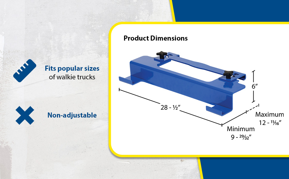 • Fits popular sizes of walkie trucks and is non-adjustable