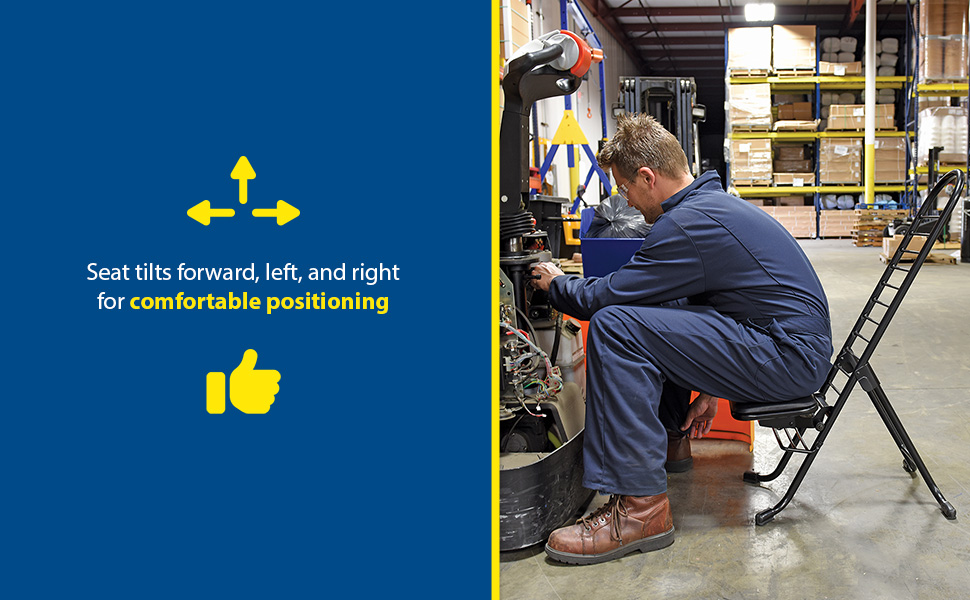 The CPRO-800LP model is not only convenient but easy to use. Simply unfold the rear legs and slide the contoured padded seat to the desired ergonomic height using the infinite adjustment for optimum work posture. Folds up to a 4" profile for easy portability and storage.