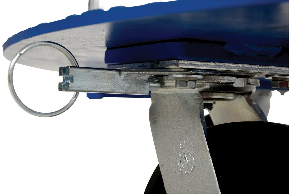 The Pallet Cart with Carousel is used to transport products to where they are needed. Then, once at the desired location, pulling the pin on the casters will allow the cart to manually rotate like a carousel for easy unloading and improved efficiency. The removable handle allows for full deck access from any position. Includes four glass-filled nylon swivel casters with swivel locks.