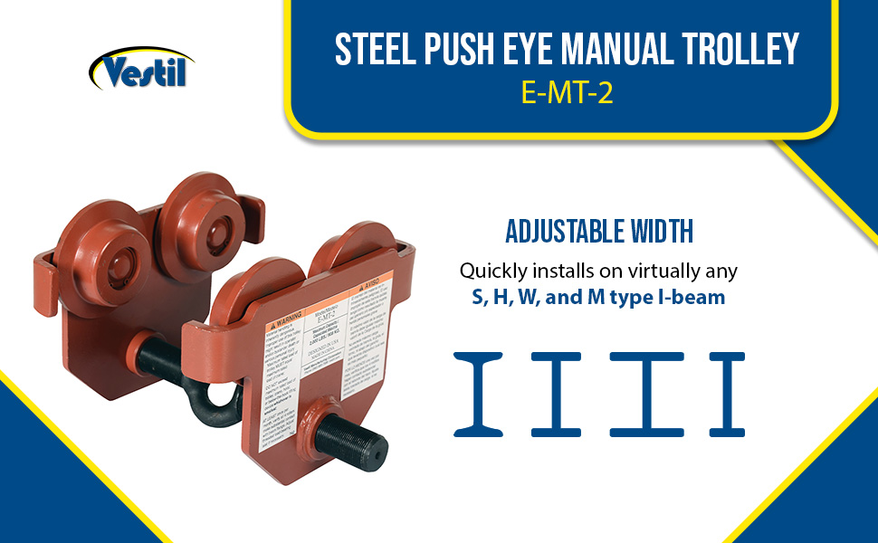 E-MT-2 E-MT-2Steel Push Eye Manual Trolley 2000 Lb. Capacity OrangeUniform Capacity (lb.): 2,000