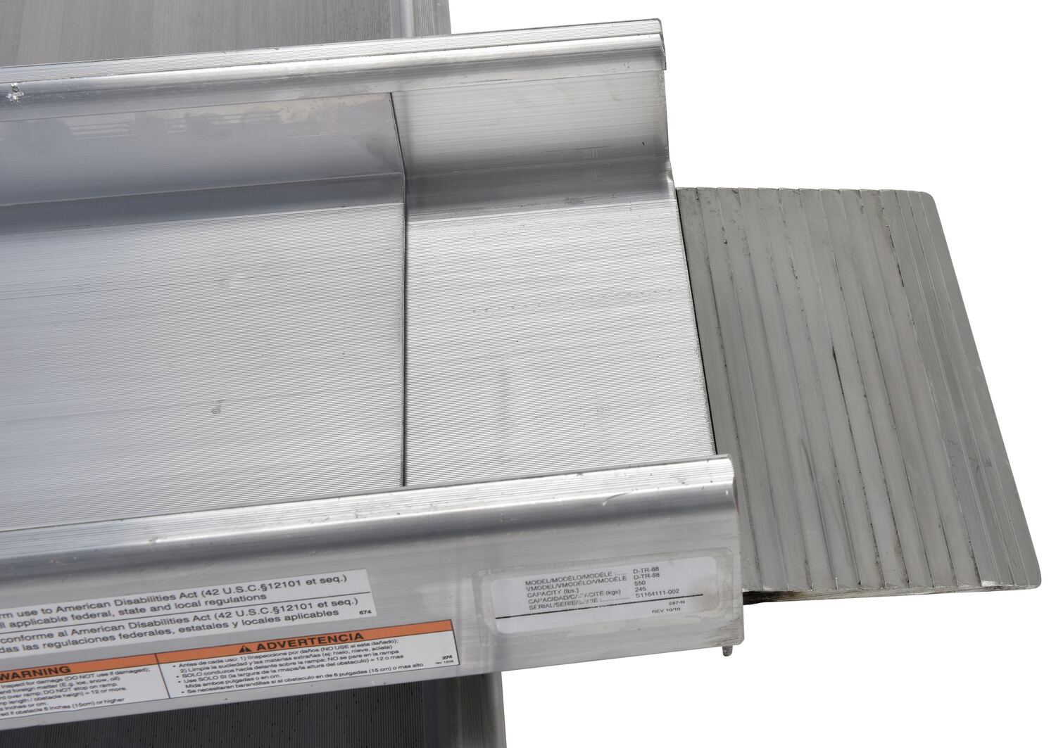 D-TR-88 D-TR-88Extruded Aluminum Wheelchair Ramp Light Telescopic 88 In. Usable Length 550 Lb. Capacity SilverUniform Capacity (lb.): 550