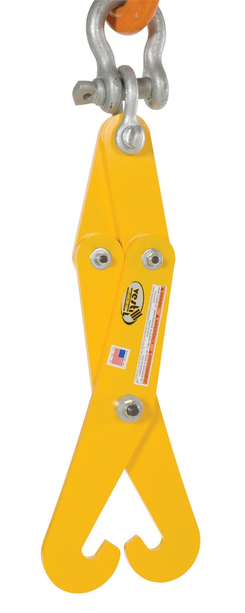 The heavy duty beam tong are designed to lift I-beams in conjunction with overhead lifting devices. The scissor style design, utilizes the weight of the products being lifted for a more stable grip. Loads need to be centered and guided during lifting operation.