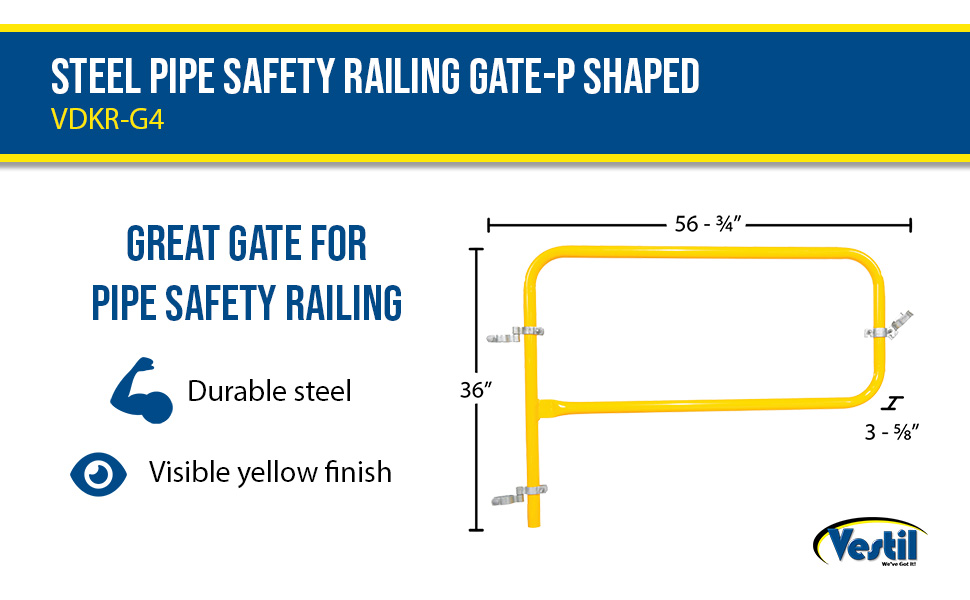 Steel Pipe Safety Railing Gate-P Shaped 48 In. x 36 In. Yell… | 90 Days Limited Warranty | 55 |