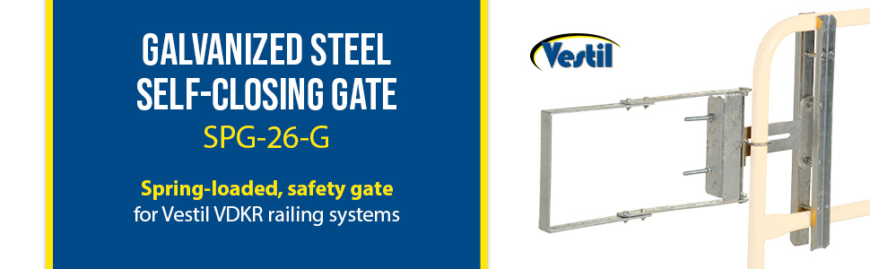 Customize your safety railings with Self-Closing Steel Gates. Gates can be mounted from the left or right with the included mounting hardware. Mount to horizontal rails that measure up to 2" diameter and are spaced 10" to 21" apart center to center. Choose from galvanized or yellow powder coat finish. Meets OSHA 1910.28(b)(3)(iv) requirements. (Railing and base not included.)