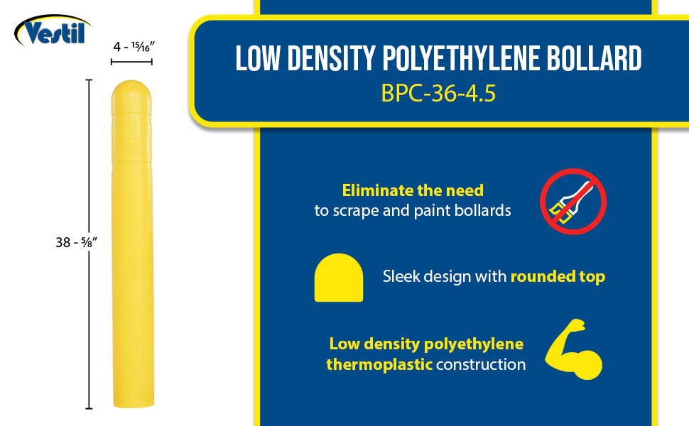 BPC-36-4.5 BPC-36-4.5Low Density Polyethylene Bollard Post Cover 36 In. x 4-1/2 In. YellowInside Diameter (in.): 4-15/16