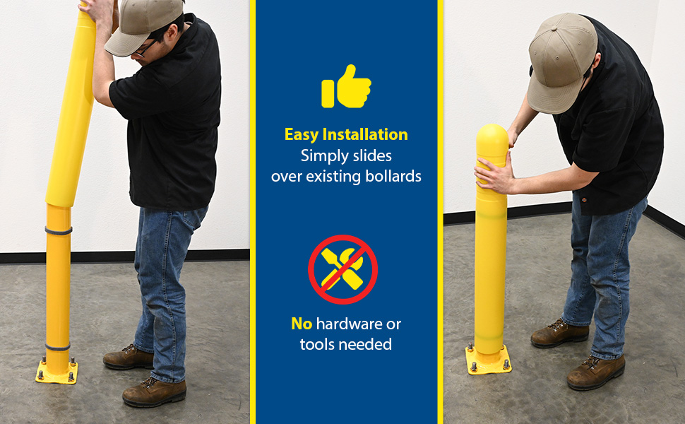 • Bollard cover eliminates the need for scraping and painting of unsightly bollards