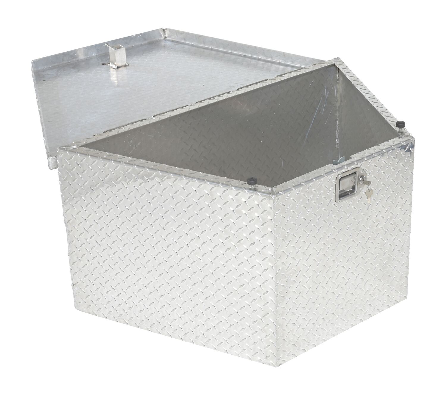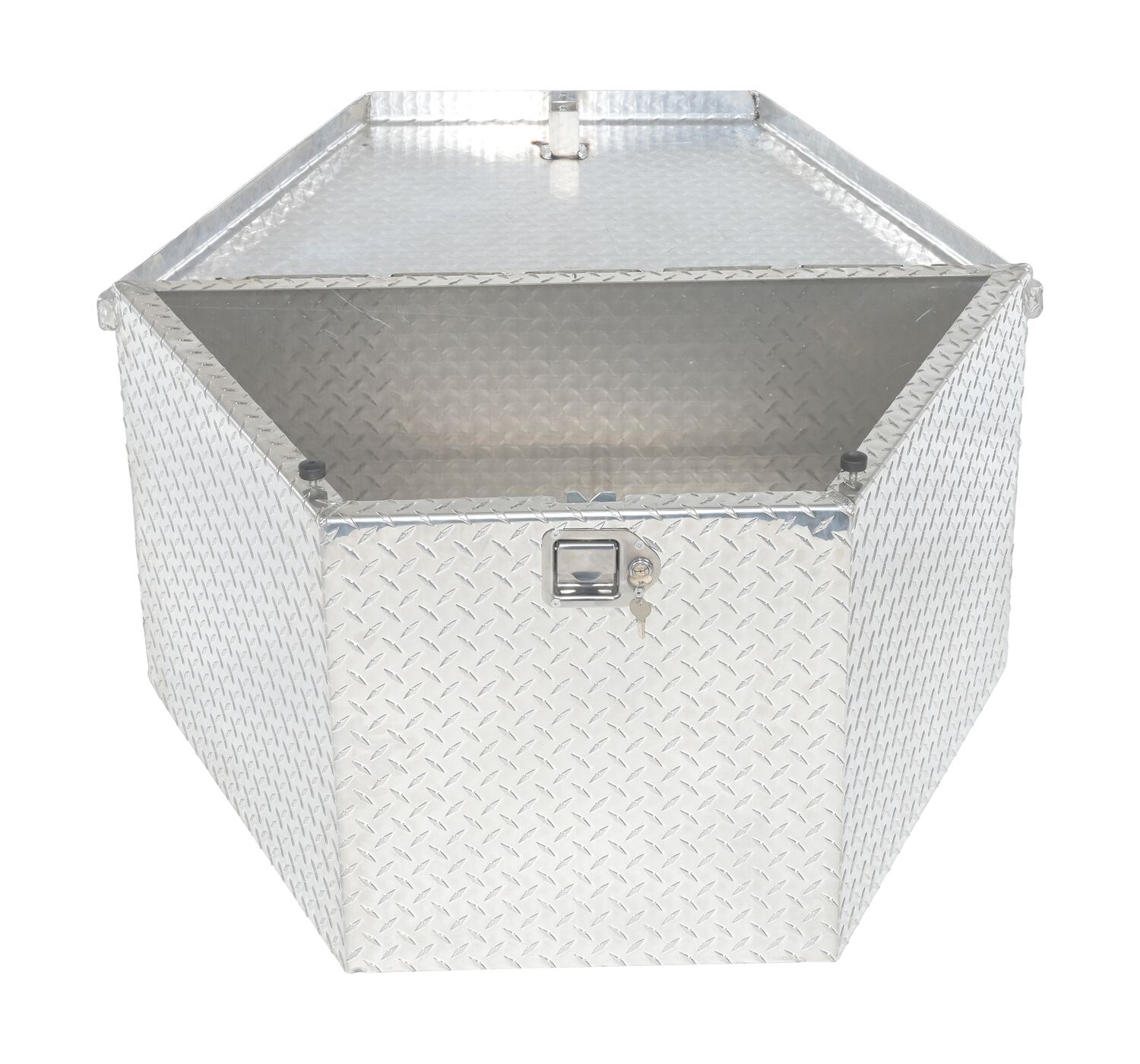 This toolbox is specifically designed to be used on the tongue of fifth wheel trailers. So often this space is never utilized fully or all together wasted. With this specifically in mind, this toolbox is built to fit directly into that empty fifth wheel space. A narrow front end with a wide back allows the user to secure a large variety of items and adds protection from the outside elements.