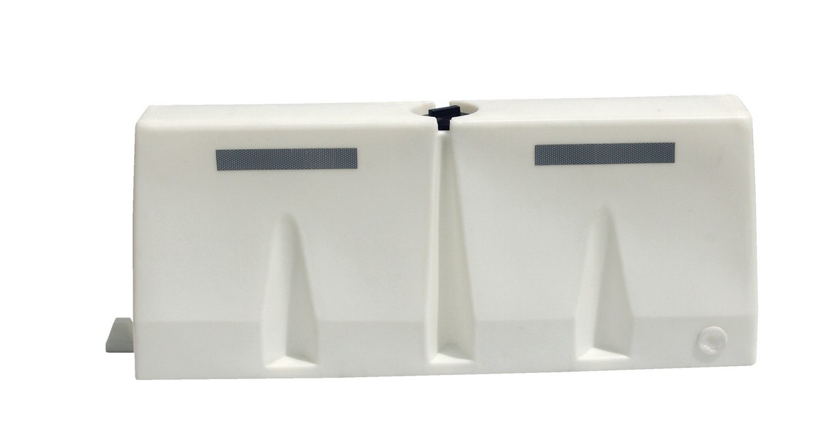 These durable polyethylene Traffic Barriers, are molded interlocking bases. Displays well at municipalities, parks, amusement parks, and parking areas. Ideal for traffic and crowd control. They come in orange, yellow or white. Recessed top fill port used to fill the barricades with sand or water. There is a tamper resistant 2" bottom drain. Reflective stripes for easy visibility.