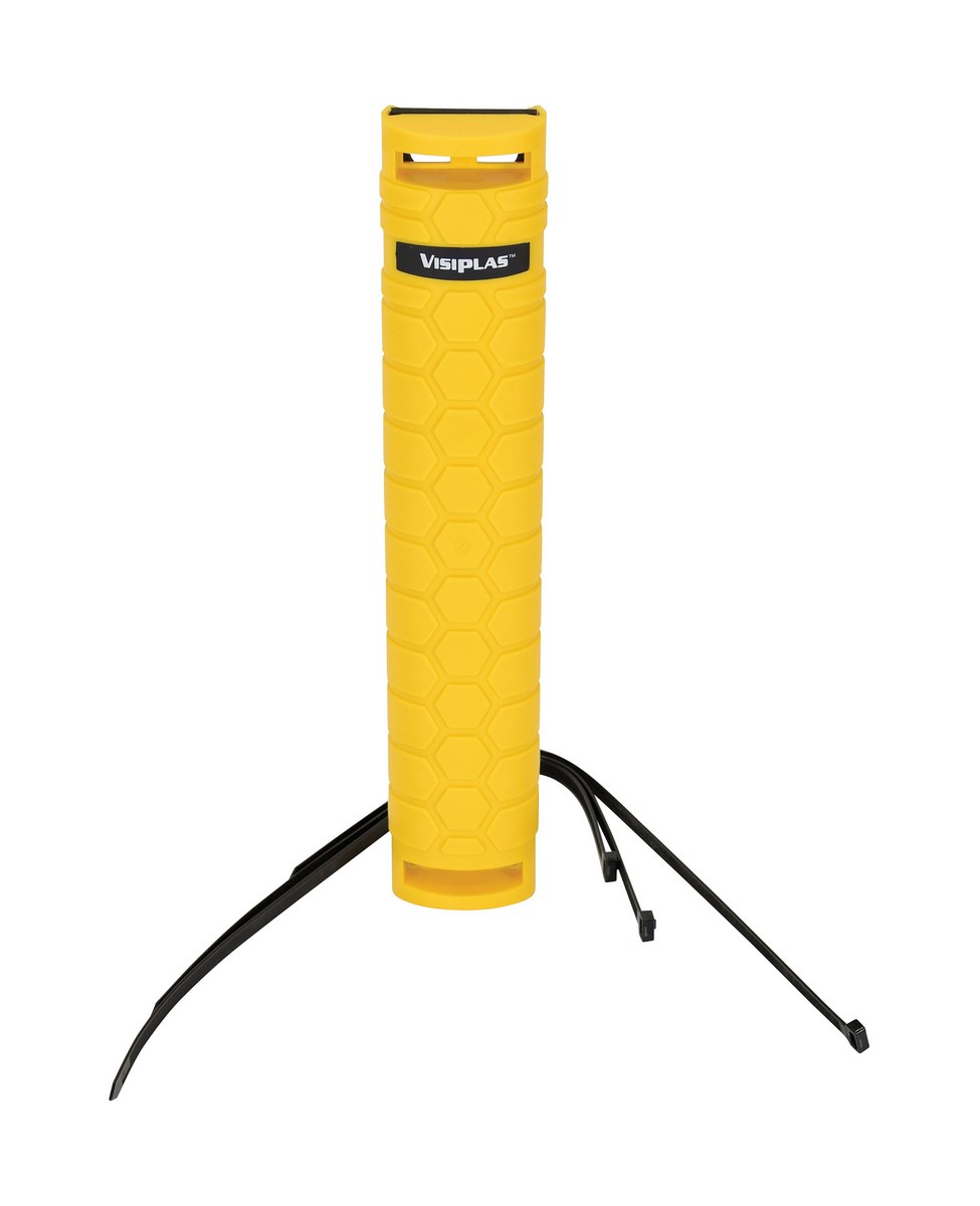 Impact resistant blended polyethylene outer shell. Internal shock absorbing pad for added protection. Double stack for extra height protection. Does not require bolting to the floor. Quickly attaches to pallet rack frame with (3) zip ties, included. High visibility fluorescent yellow color.