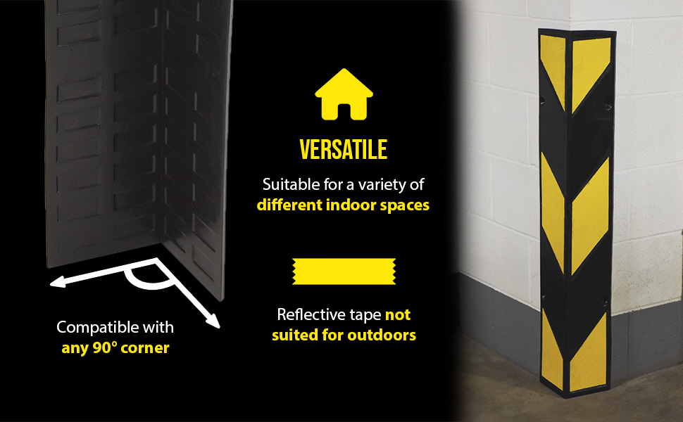Heavy-duty corner protectors are designed to protect corners from damage. Versatile protection for warehouses, offices, overhead door frames and tracks, or any 90 degree corner. Corner Protector, model VCP-42U, stop costly damage to facility corners and walls. Safety yellow, polyethylene unit maintains appearance without constant upkeep. Hardware kit is included to make installation into any wall surface quick and easy.