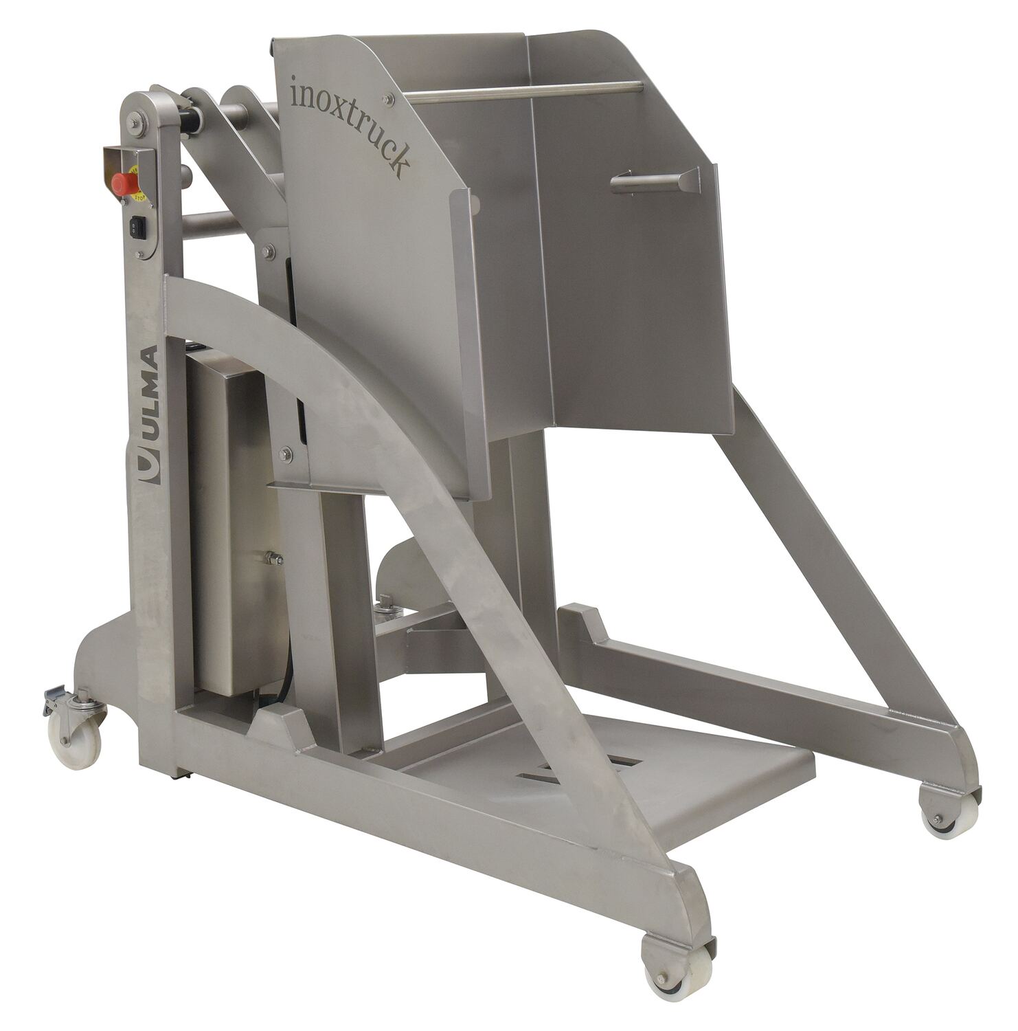 The 304L Stainless Steel Drum & Bin Dumpers are great for the 'clean' workplace as well as manufacturing facilities. The structure is designed of 304L stainless steel including hydraulic cylinders as well as the piston, which promotes easy cleaning and long lasting strength. Push button functionality allows the user to move to a precise position and stop the movement completely, in an emergency, with the emergency switch. (1) 12v AGM battery is waterproof, making maintenance a breeze. The unit rolls easily on poly wheels, while traversing from area to area. Once folded, the unit becomes more compact for utilizing less storage space.