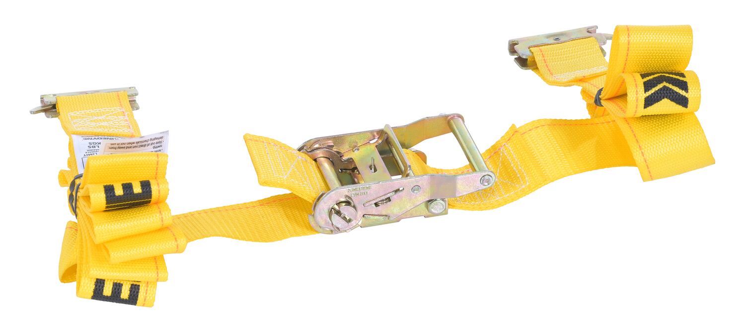 Guard against damages from slipping and shifting loads while transporting products. Spring loaded e-track fittings provide quick one-handed connection to anchor point. Both ratchet and cam buckle models tighten and release quickly. Tough strapping fabric is made of a polyester webbing.