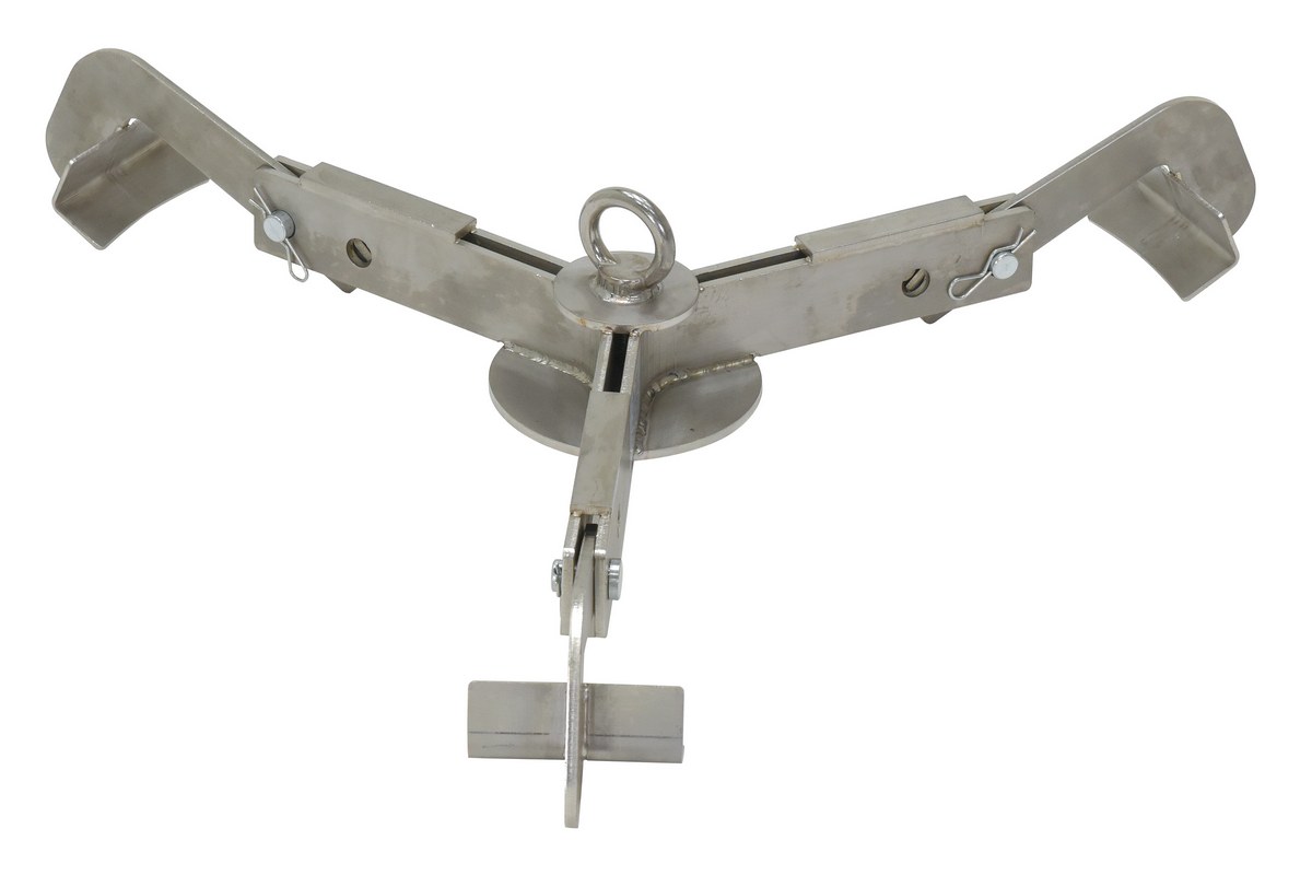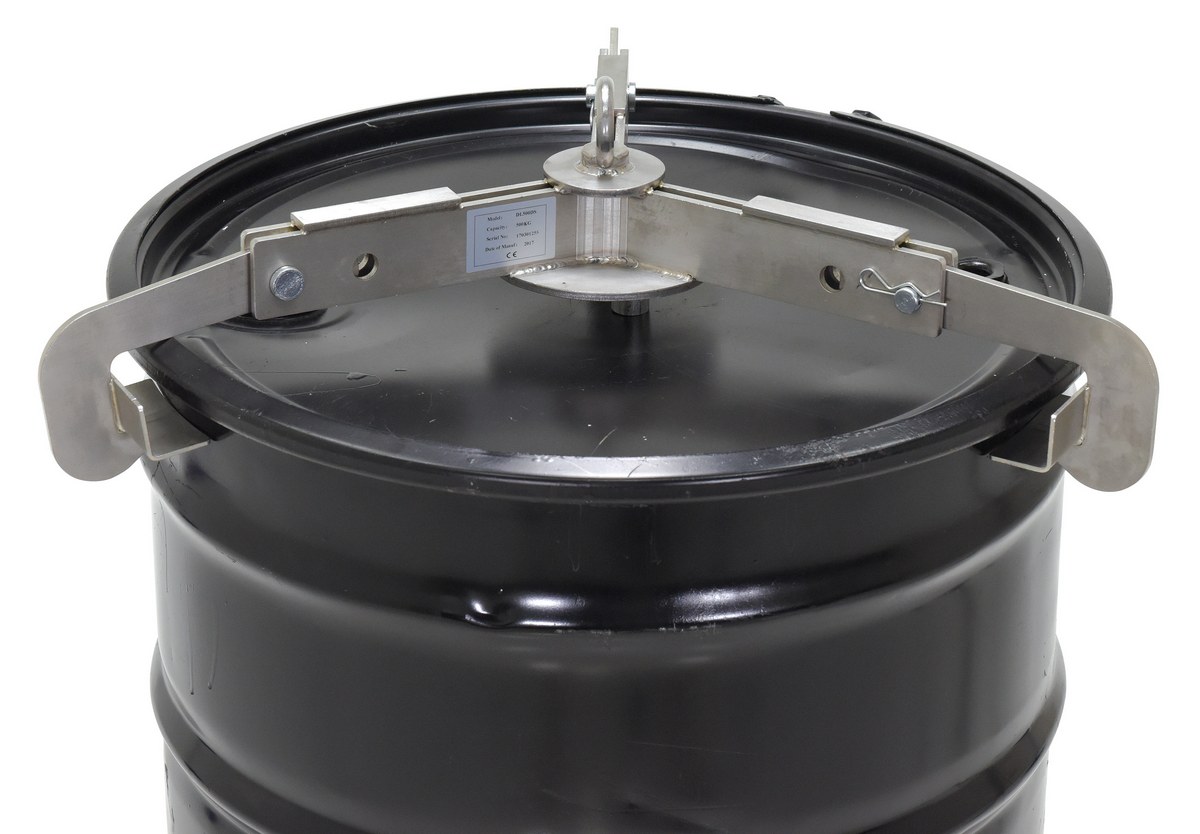 A stainless steel, adjustable, 3-point drum lifter for lifting, transporting, and stowing 30 and 55 gallon steel or plastic drums. Designed with a 3-point drum contact with stabilizing arms, which reduces damage to the drum and automatically engages the drum rim when lowered. Ideal vertical drum lifting tool which can be used with an overhead crane, hoist, or forklift attachment. Strong and durable - 304 grade full stainless steel construction. Designed for quick and easy one person operation.