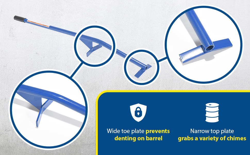• Wide toe plate prevents denting on barrel sides
