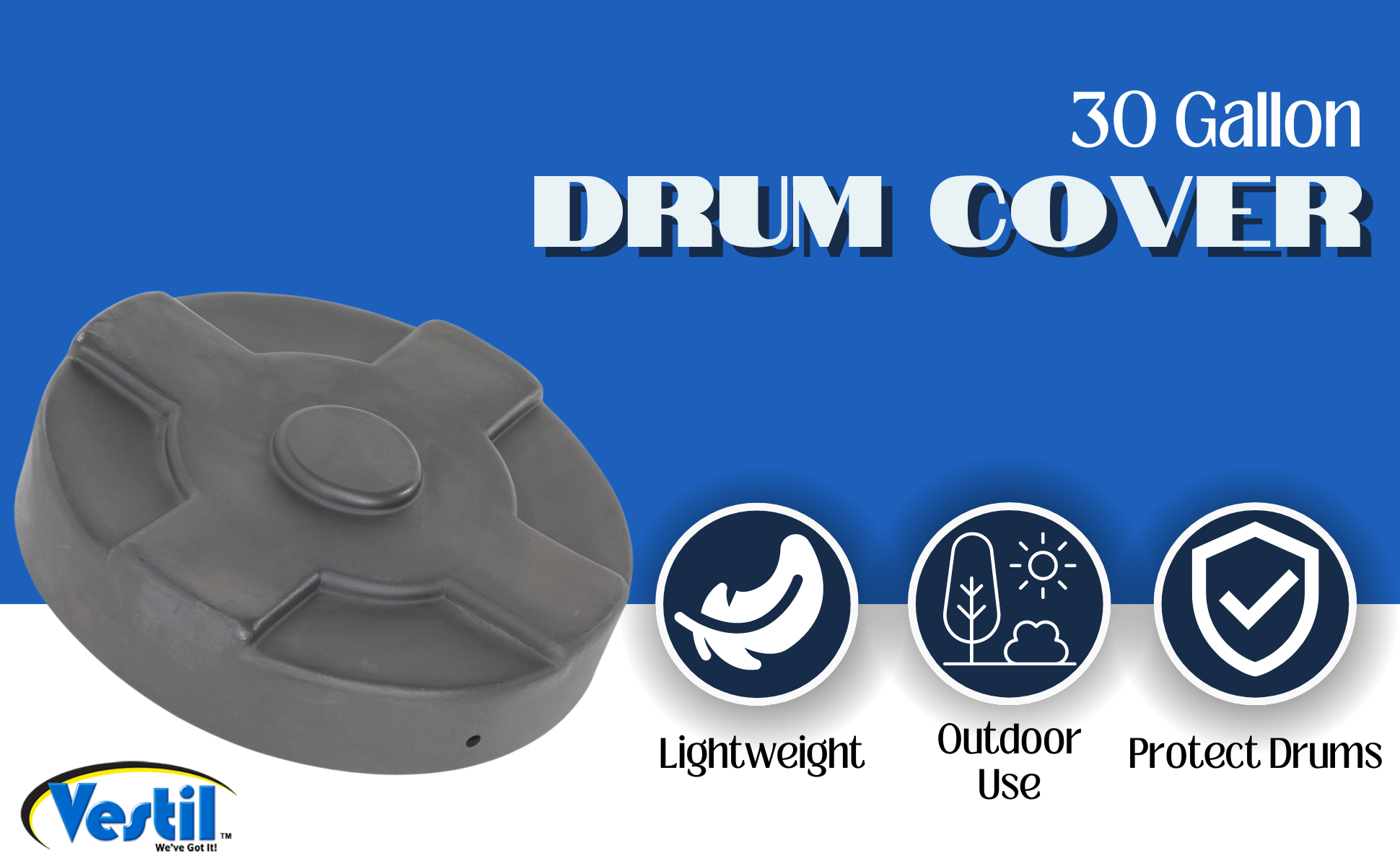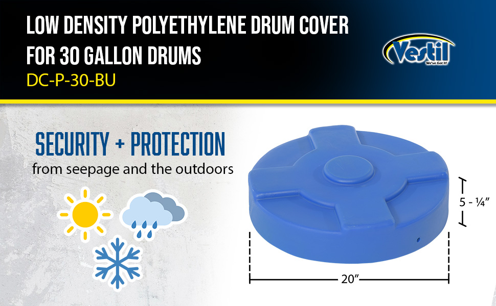 DC-P-30-BU DC-P-30-BULow-Density Polyethylene Drum Cover 30 Gallon BlueWorks With Steel Drum (gal.): 30
