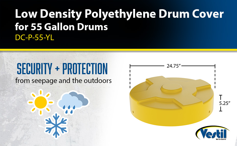 DC-P-55-YL DC-P-55-YLLow Density Polyethylene Drum Cover 55 Gallon Closed YellowWorks With Steel Drum (gal.): 55