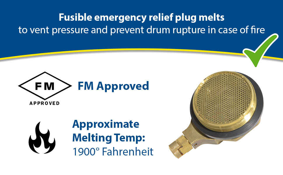 VENT-H and VENT-V are two styles available for use with drums in horizontal or vertical positions. Use with standard 2" drum plug openings. Each vent includes a flash arrestor for safety. Brass construction.
