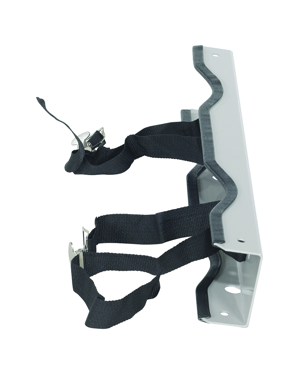 Simple design is easy to install. Simply bolt to wall and then secure cylinder with strap. Edges are protected with rubber guards on the steel units. Choose either steel or molded plastic construction. Maximum 12" cylinder diameter. For use in non-moving, static environments. Installation hardware is not included.