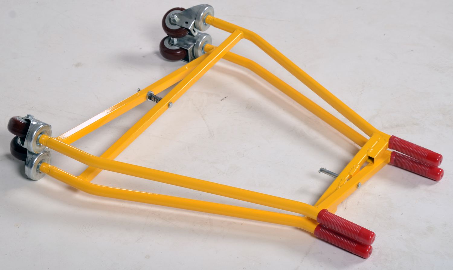 Unique dolly features elevated bucket/pail platform for better ergonomic position. Elevated platform allows for better posture during use, which leads to less fatigue and strain. For use with maximum 10-9/16" diameter round buckets. Also works with square buckets and boxes with maximum size 10-9/16" x 10-9/16". Design folds flat easily for storage when not in use. Portable on four (4) swivel poly casters. Steel construction with a yellow baked-in powder-coated toughness.