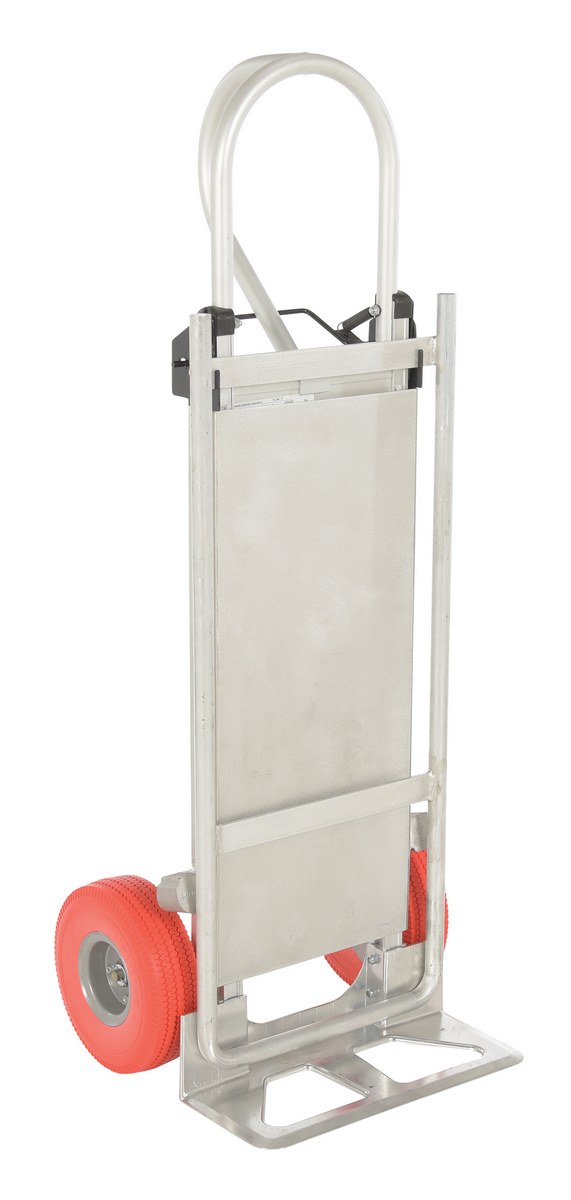 ALUM-P-TB-UFRD ALUM-P-TB-UFRDAluminum P Handle Hand Truck with Folding Down Platform Red Urethane Solid Foam 48 In. x 20-13/16 In. x 50-3/4 In. 500 Lb. Capacity SilverDolly Uniform Capacity (lb.): 500