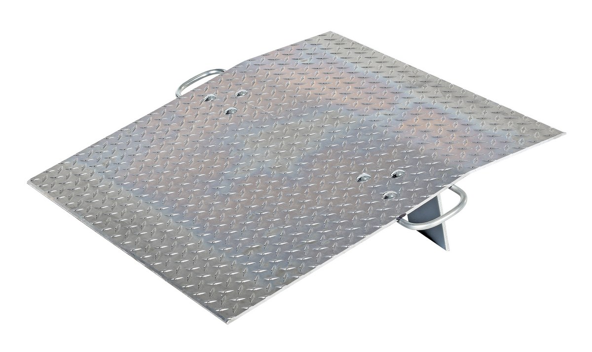 Aluminum Hand Truck Dock Plate 30 In. x 30 In. 500 Lb. Capacity SilverThis Aluminum Hand Truck dock plate is designed for use with two (2) wheel hand trucks. It is a convenient, safe, and easy way to access loading docks from trucks. This dock plate is lightweight and easily transported by just one person. The locking legs secure the plate for safe loading and unloading. Complete with bolt-on zinc plated carrying handles and locking legs.